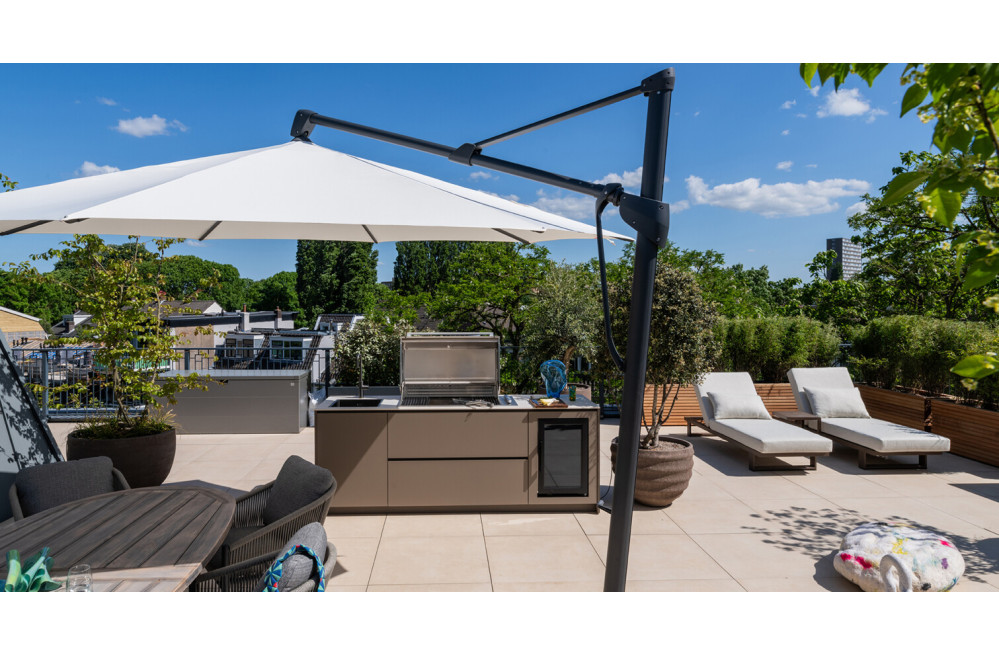 • Outdoor kitchen with gas barbecue on rooftop terrace Outdoor kitchen with gas barbecue on rooftop terrace